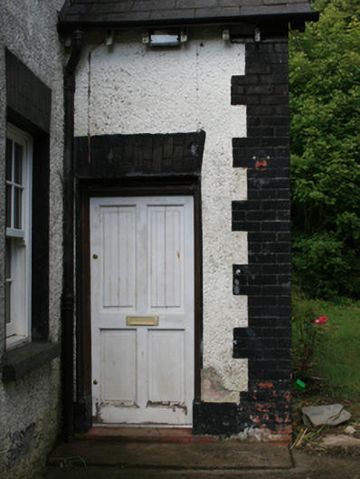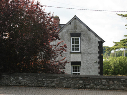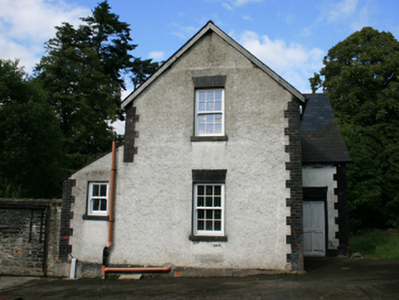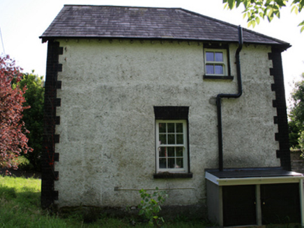 Detached Victorian L-plan two-bay two-storey former school master’s house, built c.1890, with projecting gable to front elevation and to south-west, and single-storey lean-to to north-west elevation. Now in use as private house. Hipped slate roof, except at two gables, with red brick chimneystack, catslide roof over entrance to west of main gable, pitched slate roof to projecting gable, and replacement slate roof to lean-to extension. Plain timber bargeboards to gables, bracketed eaves course, and cast-iron and replacement rainwater goods. Roughcast rendered walls with brick quoins. Brick flat-arches to openings with replacement sliding sash windows, all with stone sills. Replacement timber door to front entrance with brick flat-arch over. Yard to rear enclosed by low rubble stone wall and having remains of small lean-to outbuilding. Square-profile rendered gate piers with wrought-iron double gates to entrance.