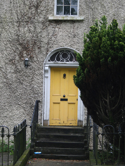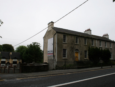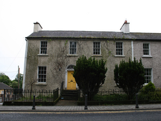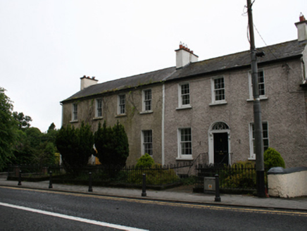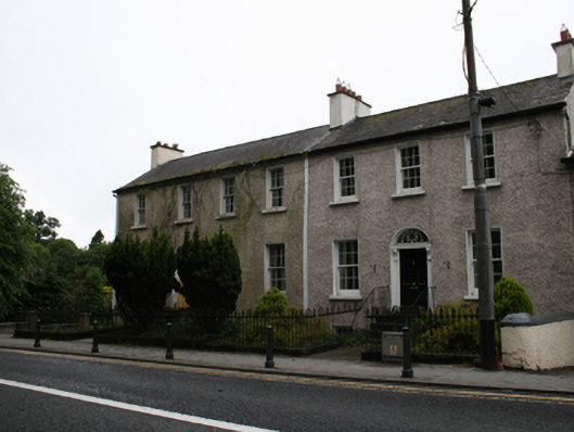 End-of-terrace four-bay two-storey over basement house, built c.1820, with two-storey return to rear, easternmost bay added c.1860. Now vacant. Pitched slate roof with clay ridge tiles, cement rendered chimneystacks to gables, replacement rainwater goods. Roughcast rendered walls to front elevation, smooth render elsewhere. Six-over-six timber sash windows to ground and first floor and stone sills. Some replacement timber casement windows to rear elevation. Round-headed door opening with teardrop fanlight over door surround of flat-panelled pilasters and brackets supporting a simple cornice, timber door with bolection panels. Limestone steps to entrance with wrought-iron railings. Set abck from street with front garden enclosed in two parts by cast-iron railings on stone plinths.