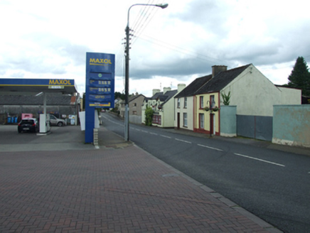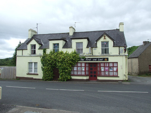 Detached four-bay two-storey house, built c.1870, with half dormers to upper floor. Now also in use as public house with recent pubfront in two southern bays. Central gabled projection to rear with later single-storey lean-to extension. Pitched slate roof with clay ridge tiles, having flat roofs and cornices to central half-dormers and pitched slate roofs with timber bargeboards to gabled half-dormers. Rendered chimneystacks to gables and centre of ridge, cast-iron rainwater goods to eaves, with replacement uPVC gutter at sill level of half-dormers. Smooth rendered walls. Square-headed windows to half dormers with one-over-one timber sash windows. Bipartite sash window to northern bay at ground level. Door opening to north with timber door and side lights. Symmetrical timber pubfront comprising glazed timber door flanked by multiple paned windows, having timber fascia with painted lettering above. Opens directly onto street.