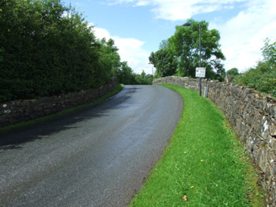 A narrow bridge of robust character spanning the former Cavan Branch of the Great Northern Railway, close to Redhills Station. The bridge has a strong elegantly proportioned arch and distinctive parapet copings. Part of the stone platform wall is visible in a field below to the north-east. It is a fine example of nineteenth century stone railway bridge construction, and though the railway line is now disused, the bridge is a reminder of the scale of the rail network in the past. The bridge makes an important contribution to the traditional character of the surrouding area and to the approach to Redhills village.