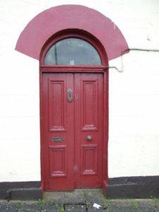 Detached three-bay single-storey with dormer attic house, built c.1850. Pitched slate roof, clay ridge tiles, pair of brick chimney stacks flanking centre bay and cast-iron rainwater goods. Ruled-and-lined rendered walls to front elevation, roughcast rendered walls to gables and rear. One-over-one timber windows with stone sills. Central round-headed entrance with single-pane fanlight over historic double-leaf timber panelled doors and original brass ironmongery. Opens directly on to street.