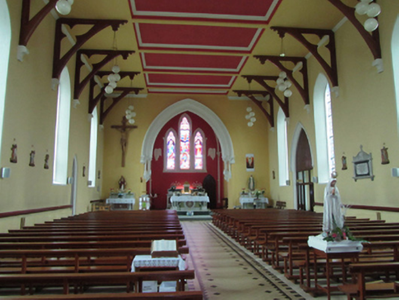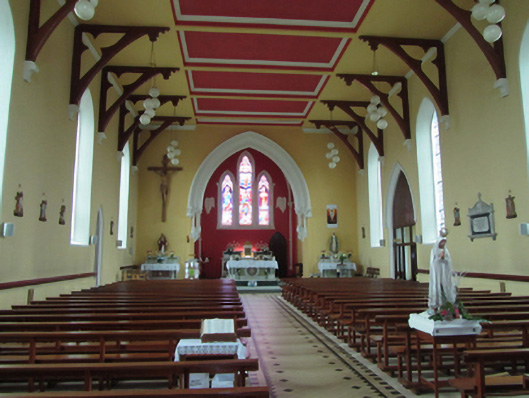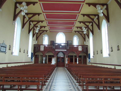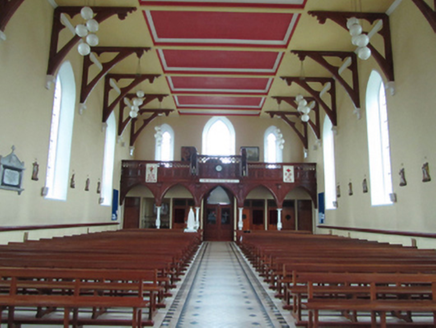An imposing landmark in a rural setting, and built on a site donated by Lord Lanesborough, this church is a significant addition to the historic character of this area to the south-west of Belturbet. The simple form with striking pinnacles is intricately decorated with carved stone detail and rich wall articulation, while the interior is equally embellished, with a timber gallery of exceptional design. The church forms part of a group, with the surrouding graveyard, ornate entrance screen, and former parochial house, that has plays a significant role in the social history of the surrounding area. The church construction began at the onset of the Great Famine and consquently could not be completed until the early 1850s; its ambitious design and detailing testify to the strength of the Catholic faith during this period.