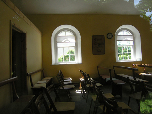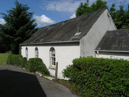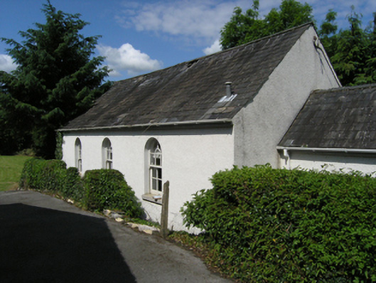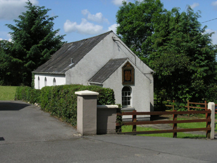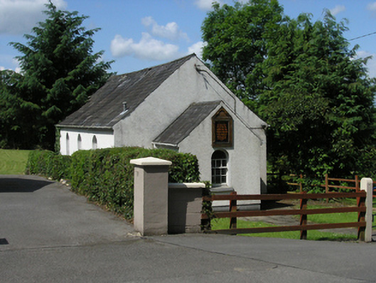 Freestanding gable-fronted single-cell Methodist church, built c.1870, with advanced single-bay porch to front and three-bay side elevation. Pitched slate roof with clay ridge tiles and uPVC rainwater goods. Roughcast rendered walls over smooth rendered plinth. Round-headed windows with plain reveals and stone sills, six-over-six timber sliding-sash windows with arced panes to upper register. Plain interior with simple historic benches. Set back from the streetline behind recent fence.