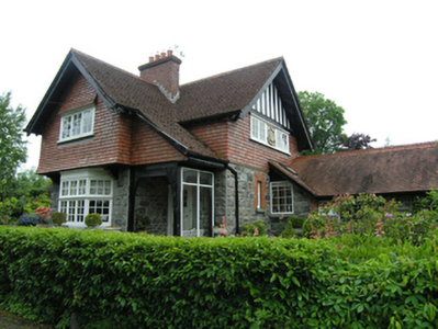 A very fine example of a well built and detailed two-storey gate lodge by the well known Dublin architectural practice of Mitchell & McCurdy. It is an interesting combination of suburban domesticity and demesne identifier, located within the well maintained former demesne landscape of Ashfield Lodge. The lodge is characterised by the first floor earthenware tiles hanging, casement windows, and carved stone cartouche. It survives almost intact, retaining a wealth of original details. It forms part of a significant group of demesne related structures, which provides insight into the running and scale of what was once one the largest estates in the county.