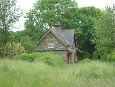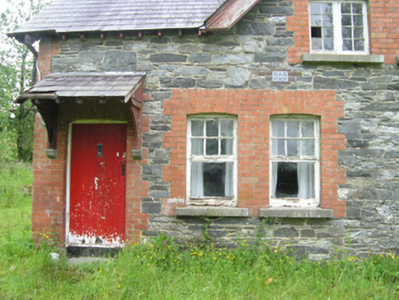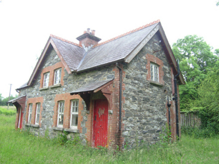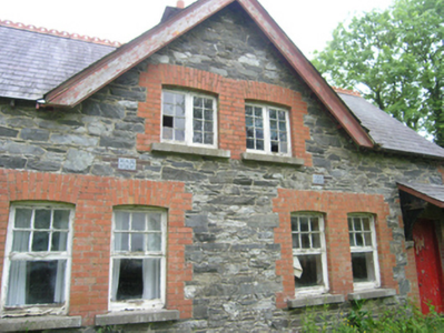 Pair of Victorian semi-detached three-bay two-storey houses, built c.1890, sharing common central gable with entrances in the outer bays, and recent single-storey extension to rear. Currently disused. Pitched slate roof with plain bargeboards, crested clay ridge tiles, central brick chimneystack with decorative brick cornice, and exposed rafters at eaves, and bargeboards at gables, with remains of cast-iron rainwater goods. Lean-to slate roof above porches resting on timber brackets on stone corbels. Random rubble stone walls with brick dressings to openings and quoins. Paired windows openings on front elevation, single windows in gables, and smaller windows on rear elevation, all with stone sills. Timber casement windows with eight-pane lights to upper floor and six-over-one to ground floor. Timber sheeted doors to front and rear elevations. Shared outbuilding to east with pitched slate roof, and rubble-stone walls with brick dressing to openings and corners. Remains of rubble stone walls to rear.