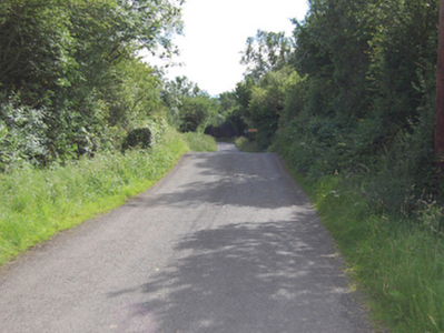 Single-arch humped backed road bridge spanning watercourse between Deralk Lough and Corglass Lough, built c.1850. Concrete surround to abutments, cut-stone voussoirs to semi-circular arch rings, squared rubble stone to soffit, squared rubble-stone spandrel and battered piers, steel railing and concrete piers to parapet.