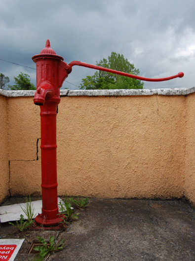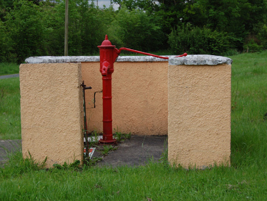 An attractive water pump with artistic detailing that lends visual appeal to a simple functional object. It has an accessible location, sited near a crossroads, due to its former importance as a communal water source. It is an interesting and notable feature on the streetscape and a reminder of a time before domestic running water.