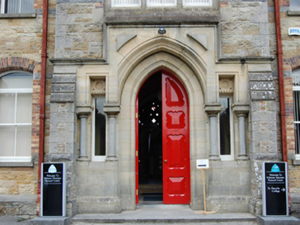 This imposing and dramatic seminary and school is one of the finest late Gothic seminaries in Ireland. Saint Patrick's Catholic College was designed by the Cavan architect William Hague (1840-1899), architect of many churches in the county. The building displays the inventive polychromatic Gothic Revival style which is characteristic of his work, its long symmetrical façade modulated by breakfronts, turrets, and traceried windows. The complex is well-built in good quality sandstone with elaborate cut stone detailing used throughout. The building retains many notable features, which enhance its architectural form and add decorative emphasis. The seminary is characteristic of the many large-scale Roman Catholic institutional buildings erected throughout the nineteenth century. Its large scale and ambitious design reflects the growing power and influence of the Catholic Church during the later nineteenth century. It was built in the demesne of Cullies House which survived as the Bishop's House until it was replaced with a new building, c.1980. Saint Patrick's Catholic College is the centrepiece of interesting group of structures including the main gates and lodge and outbuildings of the former Cullies House.
