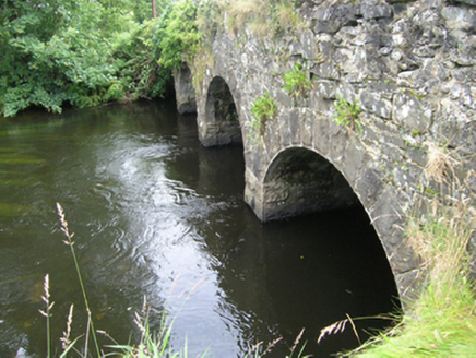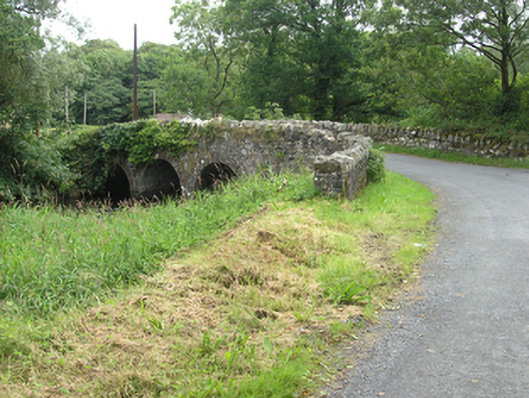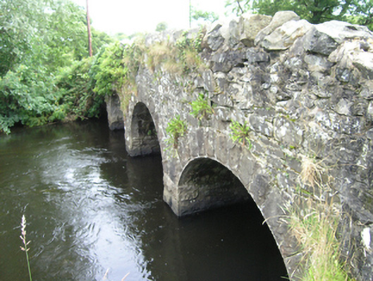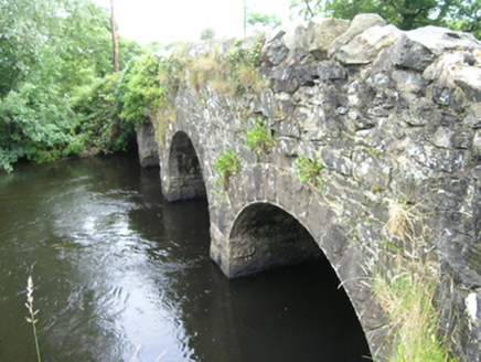 Four-arch masonry humped deck road bridge, built c.1850, spanning Annalee River, with angled approach roads. Roughly-coursed rubblestone parapets with Scotch copings. Spandrels of random rubble stone and rock faced even voussoirs to equal-sized round arches. Rubble stone soffit over rock-faced abutments with uncapped cutwaters of dressed stone to west elevation. Wide wings to each side of bridge. West face largely concealed with foliage.