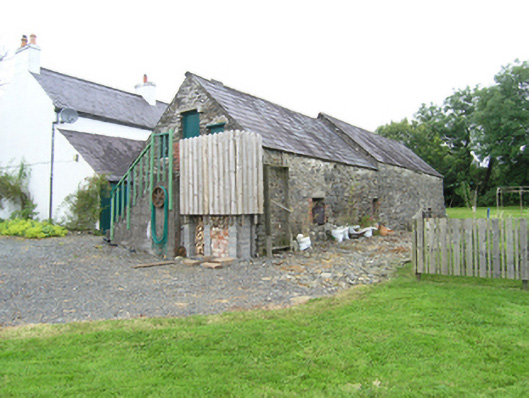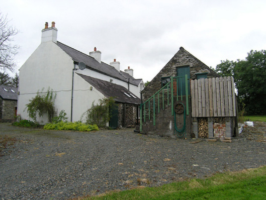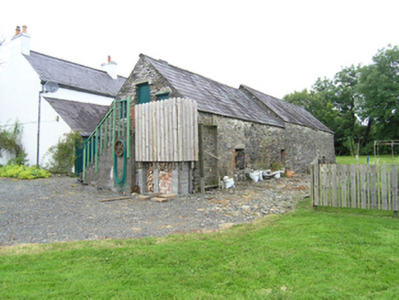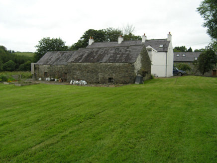 Detached five-bay two-storey former miller’s house, built c.1800, with lean-to return to rear elevation. Now a private dwelling. Pitched slate roof, clay ridge tiles, four rendered chimneystacks with coping and clay pots, one each on gable ends and two in ridge, replacement rainwater goods. Window openings with stone sills, plain reveals with one-over-one timber sash windows having exposed sash boxes, timber shutters internally. Gabled cantilevered timber canopy over entrance, four panelled door with glazed upper panel in Arts-and-Crafts style. Detached outbuildings parallel to rear, having pitched slate roof and walls of roughly coursed rubble stone.