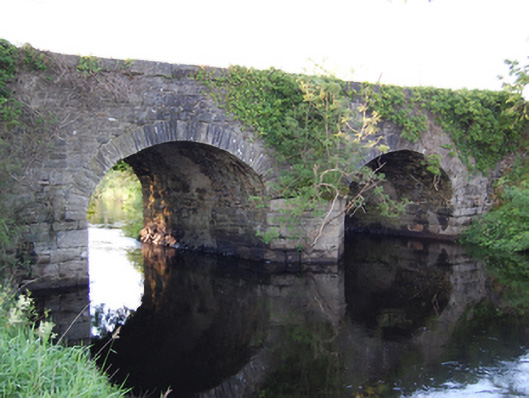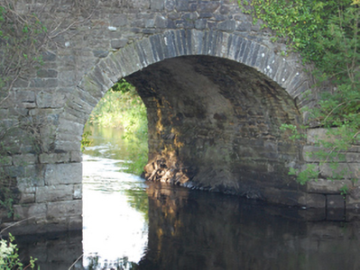 Four-arch stone road bridge, built c.1780, over River Erne, having semi-circular arches and flat deck. Squared stone blocks to abutments and piers with V-cutwaters. Roughly squared rubble stone barrels with roughly cut thin stone voussoirs to arch rings. Squared rubble stone spandrels and parapet walls with large roughly squared coping blocks. Rubble stone wing walls.