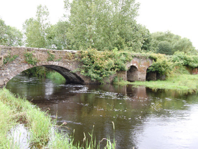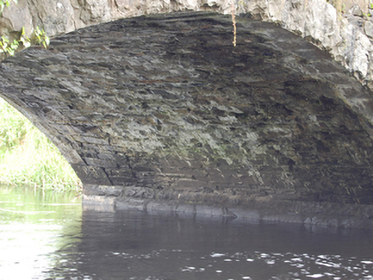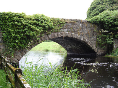 An interesting road bridge, displaying two stages of development, demonstrating changes in bridge building techniques from the mid-eighteenth to the mid-nineteenth century. The earlier western section comprises multiple narrow arches with wide piers, while the later main span is typical of the Board of Works nineteenth century arterial drainage improvements that were carried out to waterways across the lakeland region to improve land drainage and agricultural production. The bridge retains form and fabric from both construction periods, and the use of robust local stone integrates the structure into the local landscape. It contributes to the historic character of its rural surroundings and to the civil engineering heritage of the county.