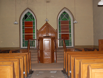 An unassuming Presbyterian church retaining its balanced historic form of dignified simplicity, characteristic of this building type. Although disused the building retains its historic fabric intact, including sash windows, external render finish and timber door. Its unadorned interior is also largely intact with historic pews and axially placed pulpit reflecting the centrality of Scripture to Presbyterian worship. Along with the former manse on the neighbouring site, it stands testament to the long history and heritage of the Presbyterian community in the area. The church has a small graveyard to the front with nineteenth and twentieth-century cut stone memorials of artistic merit.