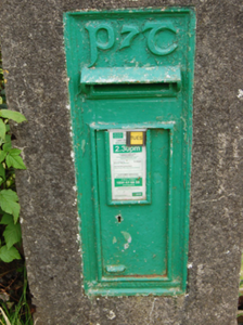 A fine piece of street furniture using a design introduced in the Victorian period, adapted after Independence to replace the royal cipher with that of the Department of Posts and Telegraphs. The Gaelic script is of particular interest reflecting the importance given to the Celtic identity in the new state. This particular design dates to after the Constitution of 1937, as earlier post-independence post boxes carried the 'S.E.' cipher of the Irish Free State, Saorstat Eireann. The manufacturer appears to have been Jessop Davis of Enniscorthy (closed 1964), also known as Saint John's Foundry.