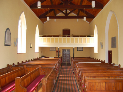 An early nineteenth-century Church of Ireland church in the Gothic Revival style, which retains much of its historic form and detailing. This church is modest in size and simple in form but is well-detailed using good quality limestone dressings to the openings. The tower to the west end is a key feature of the architectural landscape of Ballintemple. The form of this church is typical of the standard hall and tower church, which were built in great numbers, particularly between 1808-1830, using loans and grants from the Board of First Fruits (1722-1833). These simple, but well-built hall and tower churches have become almost iconographic features of the countryside. A pre-Reformation church is believed to have been on the site of the graveyard on the opposite side of the road. The ornamental grave markers in both graveyards contribute an artistic dimension to the site, while the crenellated parapets of the mausolea reflecting the style of the tower. Good quality gates, piers, and the rubble stone boundary walls complete the setting of this ensemble.