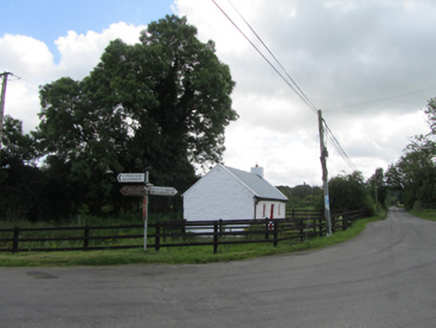 A small two-roomed house on prominent corner site at a T-junction, of a vernacular type once widespread in rural Ireland, but now increasingly rare. It has a simple symmetrical elevation and retains its historic form with small openings and textured roughcast finish. The house makes a strong contribution to the architectural character of the crossroads, and is a reminder of the scale and form of traditional rural housing in the past.