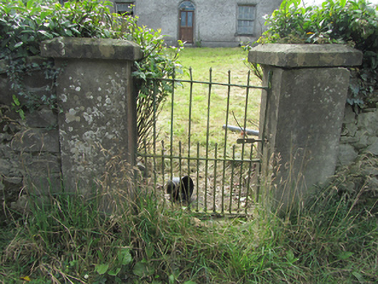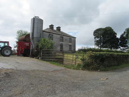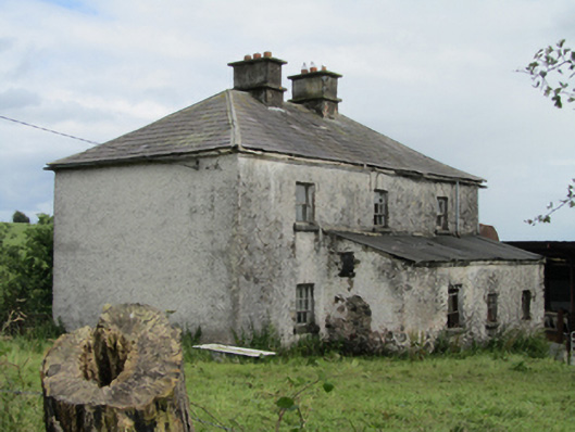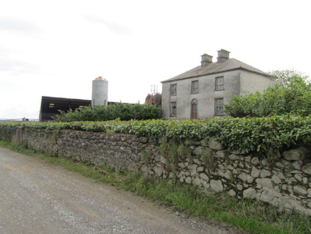 Detached three-bay two-storey house, built c.1850, with single-storey lean-to to rear. Now disused. Hipped slate roof with lead rolls to ridges, pair of rendered brick chimneystacks with plinth and coping bands flanking centre bay, continuous corbel stone at eaves, sections of cast-iron rainwater goods. Roughcast render on rubble stone walls with smooth render plinth. Six-over-six and six-over-three timber sash windows, with stone sills. Round-headed entrance with raised render surround, spoked fanlight, and replacement glazed timber door. Wrought-iron pedestrian gate on axis with entrance, flanked by square-profile rendered piers with stone caps set in rubble stone boundary walls.