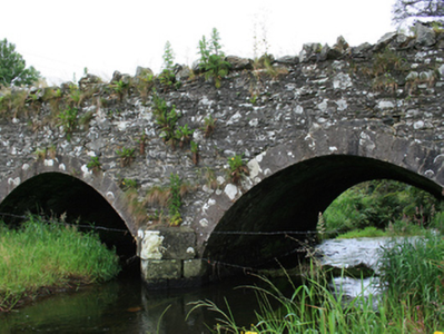 A substantial rural bridge with differing stone treatments clearly articulating the various functions of each element. The fine cut stone of the arch contrasts with the rustic appearance of the roadside parapet copings. The bridge formed part of the historic road infrastructure of the county, connecting the towns of Mullagh and Bailieborough, thereby playing a part in the social and economic development of the county. The bridge demonstrates the skill of the stone masons involved in its construction and its twin arches make a strong contribution to the historic built environment in the rural landscape.