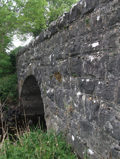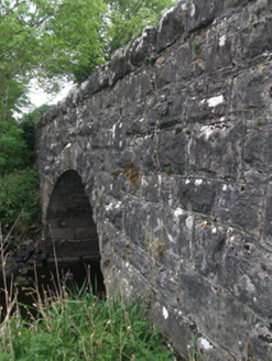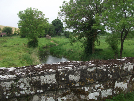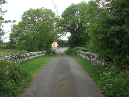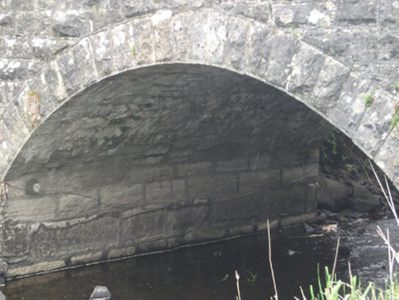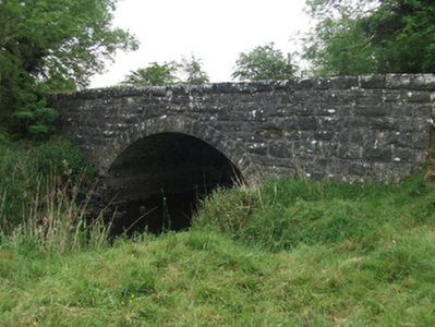 Single-span segmental-arched limestone road bridge, built c.1850, spanning north-west to south-east over River Erne. Random-coursed squared rock-faced spandrels, parapet and coping. Regular rock-faced voussoirs to arch ring with dressed underside and arris, squared rubble barrel over abutment of larger squared rubble stone. Short flight of rubble and concrete steps to river bank at south-east.