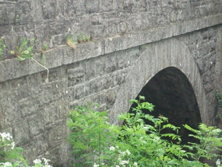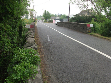 Single-span segmental-arched limestone road bridge, built c.1820, spanning north-west to south-east over the River Erne. Squared and coursed rubble spandrels and parapet having roughly rounded shoulders. Flush arch ring of dressed voussoirs rising from rounded cutwaters flanked by dressed buttresses slanting to underside of dressed string course extending across full length of bridge at apex of arch. Associated coursed rubble limestone wall with cement pointing to north-west .