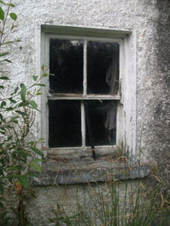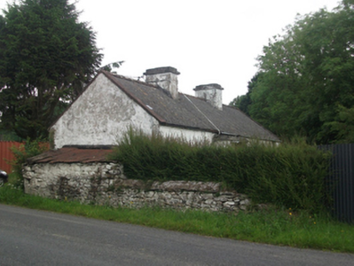 Detached four-bay single-storey lobby-entry vernacular dwelling, built c.1915, with windbreak and mid twentieth-century extensions to rear and east elevation. Now disused. Pitched corrugated asbestos roof with clay ridge tiles, cement barge copings, squared cement coping to windbreak, corrugated-iron roofs to extensions. Rendered chimneystacks, steel rainwater goods. Roughcast render to random rubble walls with raised bands to corners. Ruled-and-lined rendered walls to windbreak. Lime-washed random rubble stone walls to extension. Two-over-two timber sash windows to south elevation with convex horns in raised surrounds, with squared stone sills. Square-headed window openings to extension. Timber matchboard doors. Corrugated-iron roof and coursed random rubble stone walls to lean-to to west. Random rubble boundary walls with cement copings to west. Set perpendicular to road.