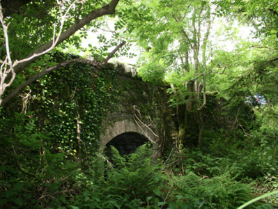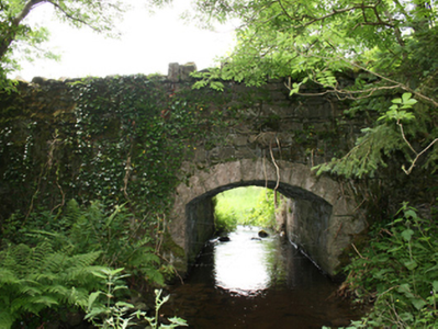 A well-composed bridge with an elegant cut-stone arch set in robust rubble elevations, forming a contrast of high aesthetic quality. Though overgrown, the bridge is very much intact and retains all of its original materials. Historically associated with a mill pond, a mill race, a former flax mill, and a long-demolished corn mill along the stream, the bridge is part of a wider ensemble of structures of industrial heritage interest. Historic Ordnance Survey maps indicate the presence of a holy well to the south-east of the bridge.