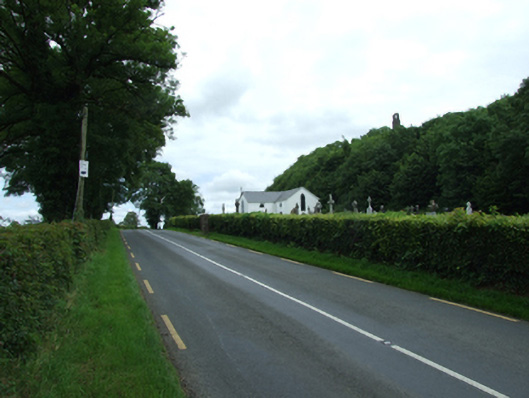 A belfry forming a striking landmark, set on the summit of Carrick Rock, overlooking St Mary's Church below to the east and Lough Sheelin to the weat. This eyecatching building makes a significant contribution to the historic character of the surrounding landscape. Though its construction predates St Mary's, it is said to have served its belfry until 1919 when the cast-iron belfry was erected adjacent to the church.