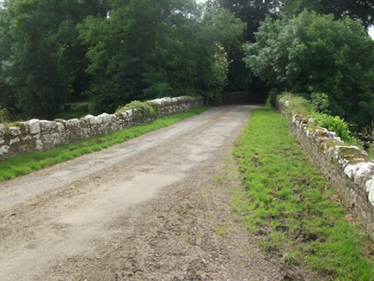 A Board of Works bridge, on the border of counties Cavan and Meath, constructed of rock-faced masonry with impost detail, forming a structure of architectural sophistication in a rural setting, The incorporation of an earlier bridge charts the development of building techniques in bridge construction from simple rubble construction to sharp architectural detail. The reduction to a single arch demonstrates the rationalisation of the water course, typical of arterial drainage schemes of the later nineteenth century.