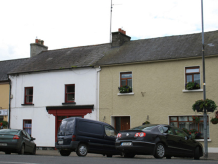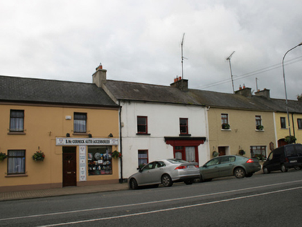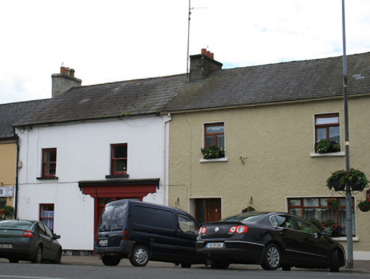 A house forming part of the original fabric of the rigorously planned town of Mullagh and enhanced by a highly distinctive and well preserved shopfront. The house contributes to the unity of the street elevation with similar openings and frontage width to its neighbours,the stepping roofs following the gentle slope of the underlying topography. The shopfront with its distinctive wider fascia terminated by an elegant curving profile constitutes a good example of the modification of the traditional form to a narrower width, the simple presentation evoking the harmonious aesthetic which predominated in villages in earlier times. The survival of the shopfront and the original windows and detailing of the house contribute strongly to the architectural coherency and character of the village.