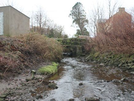 Single-arched bridge, built c. 1860, carrying road over small unnamed stream\former millrace flowing into the estuary of the River Leannan adjacent to the north. Segmental-headed arch with squared and dressed rubble sandstone voussoirs; squared rubble stone construction to arch barrel with projecting cut stone stringcourse to bridge at arch springing point. Modern water pipe to the north side of bridge resting on modern buttresses. Squared and randomly coursed rubble sandstone construction to spandrels and abutments. Rubble sandstone construction to parapets; parapets now altered (lowered) with cement coping over. Tarmacadam deck with footpath to the south. Located to the north-east of the centre of Ramelton adjacent to the River Leannan.