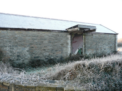This simple but well-built former railway goods shed was originally built to serve the former Ballindrait railway station (now demolished). It retains its early form and character despite being out of use for a considerable period. It is robustly built in local rubble stone masonry, and its survival in relatively good condition is testament to the quality of its original construction. Its visual expression is enhanced by the retention of the natural slate roof, battened timber sliding doors to the loading bays, while a number of the original metal-framed windows survive to the gable ends. The block-and-start quoins to the corners and to the openings, the block-and-start surrounds to the openings help to give this utilitarian structure a strong architectural character that is indicative of the long-term ambitions of the various railway companies operating in Ireland during the late-nineteenth and into the first decades of the twentieth century. This structure was originally built as a railway goods shed associated with the former Ballindrait railway station, and its relatively large scale provides an interesting historical insight into the level of freight passing along this line during its heyday. This former railway goods shed was originally constructed by the Strabane to Letterkenny Railway Company (worked by the Donegal Railway Company Joint Committee) as part of the Strabane to Letterkenny narrow gauge railway line (three foot gauge), which opened in January 1909 and closed on the 1st of January 1960. This was the final railway line built in Donegal and formed part of an extensive network of railway lines and narrow gauge railway lines that served the county up until the mid-twentieth century. This unassuming structure now acts as an interesting historical reminder of this former extensive railway network, and is an integral element of the built heritage of the local area and of the wider transport heritage of the county. It forms part of a group of railway structures at Ballindrait along with the former stationmaster’s house (see 40834011) to the east, ancillary structures to the west, and a former crossing guard’s house (see 40834014) to the north-west.