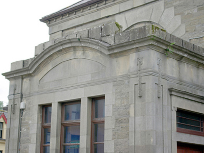 This fine early nineteenth-century classical-style courthouse retains its early form and character. It is well-built to the main elevation (south-east) with good quality ashlar sandstone masonry and has some high-quality cut stone detailing, particularly to the main porch, which was apparently added in 1891. The subdued classical detailing and its prominent location in the streetscape of Donegal Town overlooking The Diamond give it a strong presence and air of authority that befits an important civic building such as a courthouse. The loss of the original window fittings, although regrettable, fails to detract substantially from its architectural integrity. The interior retains some interesting timber joinery and carving, which probably dates to c. 1925 (see below). This building was originally built in 1833 at a cost of £800, and originally had a bridewell or jail to the basement level. The original architect is not known. The present building replaced an earlier courthouse in Donegal Town, which was repaired in 1810 and 1830 (IAA) by John McGuiggan, which may have been the upstairs section of the market house (now demolished), on the west side of the Diamond Bridge Street (Pigot’s Directory). The present courthouse was later extended and ‘repaired’ in 1891 to designs by Frederick Gahan (c. 1822 – c. 1904), who was the County Surveyor for Donegal (initially in the ‘southern division’ of the county) from 1864 until 1891. The courthouse was later set alight and damaged by the IRA in 1922, a fate suffered by many buildings of its type throughout Ireland between 1919 and 1923. It was later ‘reconstructed’ by William James Doherty (1887 – 1951), an architect from Derry City who worked extensively in County Donegal from the 1920s. Occupying a prominent site, this building is a notable and imposing feature in the Streetscape of Donegal Town, and an integral element of the built heritage of the town. The simple railings and gates to the south-west complete this composition and add to the setting. As an important public building within the town, this courthouse is a structure of merit, not simply for its impressive architectural design, but because it represents historical and social significance to the local area.