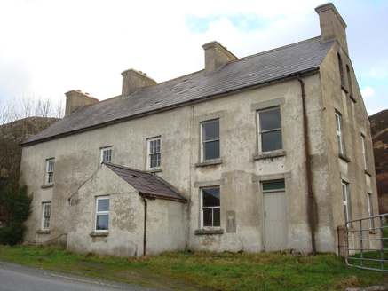 Detached three-bay two-storey house with attic, built c.1860, with two further bays added to south c.1880, latter having taller first floor windows, and with gabled porch projection to front of earlier block. South bays formerly in use as post office. Single-storey ruinous outbuilding to rear. Pitched slate roof with terracotta ridge tiles, raised eaves course with replacement gutters and cast-iron downpipes, and four rendered chimneystacks. Pitched slate roof to porch. Lined-and-ruled smooth-rendered walls. Paired round-headed fixed timber windows to attic level of south gable and square-headed elsewhere, with stone sills and timber sliding sash windows, six-over-six pane to older block and one-over-one pane to southern two at front first floor level, one-over-two pane to front ground floor, and replacement uPVC to lower floors of south gable and to porch. Timber door with overlight to post office and recent door to porch. Remains of post box to ground floor with name "Kindrum Post Office" to lintel over doorway into post office. Gardens to front and rear.