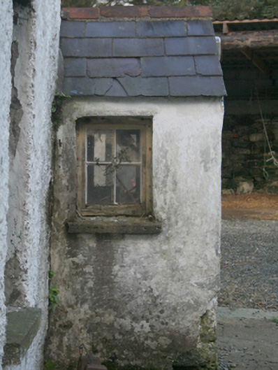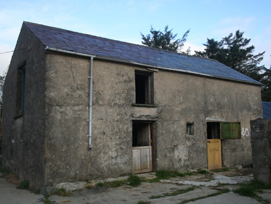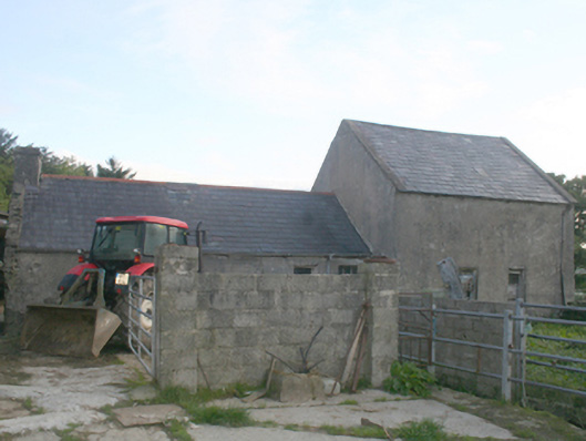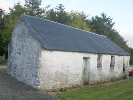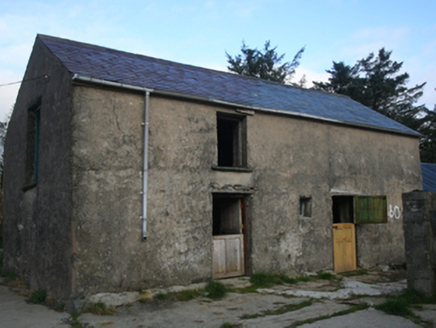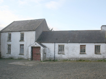 Detached two-bay two-storey with four-bay single-storey block to west gable house, built c. 1860, with projecting entrance porch to junction of the two blocks, no longer inhabited. Pitched slate roof, pitched roof to porch, concrete gable coping, clay ridge tiles to single-storey, chimneystack to single-storey gable, remnant cast-iron rainwater goods to rear elevation, remnant cast-iron fittings with replacement rainwater goods to remainder. Rubble stone walls, painted roughcast to two-storey front elevation, painted render to single-storey front elevation, render to remainder. Square-headed window openings with timber six-over-six horned sash windows over limestone sills. Square-headed door opening to porch, timber panelled replacement door. Set in own grounds with yard surrounding. Several outbuildings including four-bay single-storey to the north-west, with pitched corrugated-metal roof, limewashed rendered rubble stone walls; two-bay two-storey outbuilding to the south-west, pitched slate roof and rendered walls; single-bay single-storey outbuilding to south-west, corrugated-metal mono-pitched roof and limewashed rendered rubble stone walls.