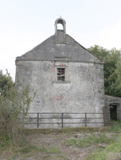 Detached four-bay two-storey gabled outbuilding and coach house to Falmore House (see 40901128), built c. 1850, with ashlar bellcote to south gable, and with single-storey lean-to extension to east. Pitched slate roof with grey clayware ridge tiles and cast-iron rainwater goods. Ashlar gable coping and stringcourse to south gable forming pediment. Roughcast rendered walls with large, tooled limestone block-and-start quoins. Square-headed window openings with red brick surrounds, with assortment timber sash windows and with ashlar stone sills. Square-headed door opening with battened timber doors. Set within grounds of Falmore House to north-east of main house.