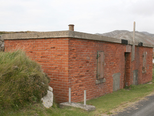 This interesting former guard house survives in relatively good condition and forms an integral element of the group of sites associated with Fort Dunree (see 40901813 for original fort; see 40901826 for later fort on summit of Dunree Hill). It is constructed using robust materials, while its wedge-shaped plan allows for a considerable field of fire from the gun loops located along three elevations, thus maximising the defence of the gateway. Although out of use, it provides an interesting historical insight into the defence considerations afforded an important coastal battery at the time of construction. The form and style of this former guard house indicates that it was either built in conjunction with the construction of the later fort on top of Dunree Hill to the north-east (see 40901826), built 1895 – 97, or in the following few decades. It was probably originally built by the British Army, which was stationed at Dunree Fort until 1938 (Lough Swilly was one of the three ‘Treaty Ports’). It was subsequently occupied by the Irish Army who fortified the site during World War Two\The Emergency. The site and this guard house were later abandoned following the end of World War Two. The adjacent sentry hut, probably a later addition c. 1940, is a simple and utilitarian structure but adds to the context of the guard house. The red brick guard house to the north is another interesting defensive structure with plate metal guards to the openings and robust red brick walls, and adds further to the setting. These structures form part of a site that together constitute one of a number of coastal batteries built by the British military around Lough Swilly along with Inch Fort and Neid’s Point to the south, Lenan Head to the north, and Muckamish, Rathmullan and Knockalla to the far side of the Lough. Of historic importance to the Irish nation, shedding light on the strategic value of Lough Swilly especially to the British during World War One, and played an integral role in safeguarding Ireland’s neutrality during World War Two. Furthermore, the site provides insight into the defensive thinking of military planners and the skills of military engineers at the turn of the twentieth-century, and constitutes an integral element of the built heritage of Donegal.