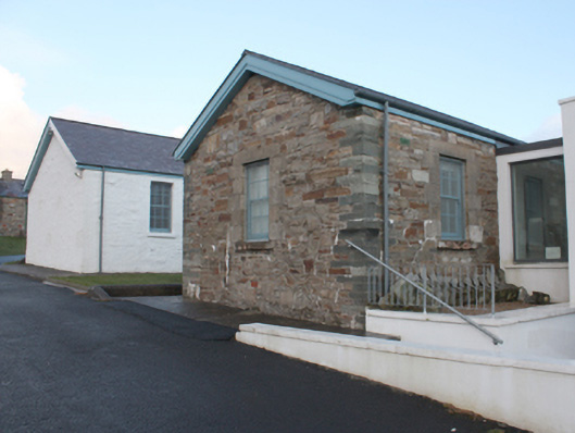 This substantial group of single-storey structures constitute and integral element of the Fort Dunree site (see 40901813 for original fort; see 40901826 for later fort on summit of Dunree Hill). Although some of these buildings have been altered, they retain much of their original character and form, and a good deal of their original fabric including natural slate roofs and timber sliding sash and timber casement windows. These buildings were robustly constructed using local rubble stone masonry, their continued existence after a long period of neglect indicative of the quality of their original construction. The robust form of these stone-built structures is in contrast to the mainly corrugated-metal clad utilitarian structures to the main barrack complex (see 40901824) adjacent to the east. The three central buildings to site have been sensitively modified in recent years to accommodate new use as a museum, gallery and exhibition space, retaining much of their early character and form, and providing a new facility for tourists and the local community. The southern most of these three buildings was reputedly formerly in use as a military hospital, an important facility in a relatively large military complex. A number of the buildings in this complex may predate the establishment of the later fort on Dunree Hill in 1895 – 97 to the east and are probably the earliest buildings still extant outside the confines of the original fort to the west (see 40901801). The domestic appearance of the detached or two semi-detached buildings to the west of the site with multiple porches suggests that this was formerly in use as a house or houses, perhaps for military medical personnel living quarters or officer’s quarters. The unusual single-storey structure to the north-east of the complex having four doorways to the front elevation suggests that this may be a store, or perhaps a toilet or shower block. These structures date to c. 1900, or slightly beforehand, and were constructed by the British Army (or Royal Engineers), which was stationed at Dunree Fort until 1938 (Lough Swilly was one of the three ‘Treaty Ports’). It was subsequently occupied by the Irish Army who fortified the site during World War Two\The Emergency. The site was later abandoned following the end of World War Two. These structures form part of a site that together constitute one of a number of coastal batteries built by the British military around Lough Swilly along with Inch Fort and Ned’s Point to the south, Lenan Head to the north, and Muckamish, Rathmullan and Knockalla to the far side of the Lough. Of historic importance to the Irish nation, shedding light on the strategic value of Lough Swilly especially to the British during World War One, and played an integral role in safeguarding Ireland’s neutrality during World War Two.
