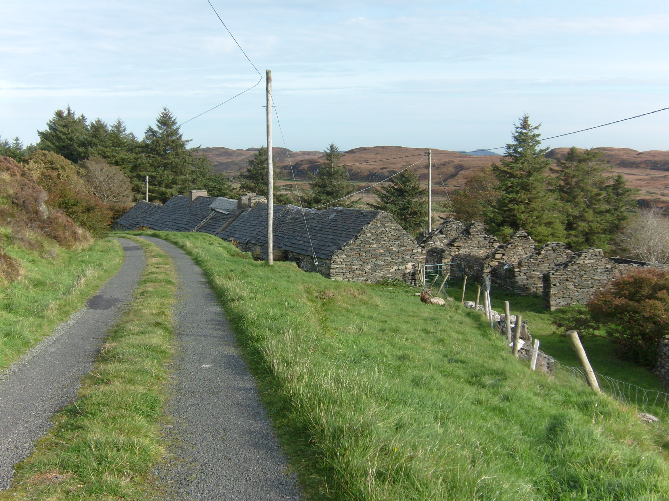 An important grouping of buildings on the linear plan characteristic of Irish vernacular architecture. The survival of the locally sourced Roshin slate to the roofs is of particular significance, as such roofs are becoming rare. The map evidence shows this grouping to be pre-1837. The houses stand at the centre of the site, with the outbuildings at the periphery.