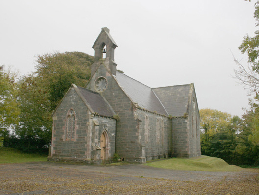 A fine Gothic style parish church by architect Joseph Welland, which closed in 1991. There are signed drawings of the church, dated October 1850, in the RCB library. Although now in disrepair, it has retained its architectural integrity and most of its detailing. The pointed-arched openings lend it a Gothic Revival character that is typical of its type and date while this building is tropical of its date as it has a bellcote as opposed to a tower. Rowan (1979) describes the interior 'with transept arches and crossed trusses before the chancel'. This church replaced an earlier church, dated 1747, now in ruins in the graveyard. The memorial to Captain Ernest Grey Lampton Cochrane (1834-1911) with the anchor and cross motif is also of note.