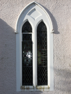 Freestanding gable-fronted five-bay Presbyterian church, built c. 1893, with central breakfront porch, and with vestry to rear. Pitched slate roof with grey clayware ridge tiles and cresting, rendered gable coping and skew ends, replacement rainwater goods. Roughcast rendered walls with smooth rendered perpendicular buttresses to south, east and west elevations and diagonal buttresses to front with conical finials topped with flower motifs, smooth rendered plinth course and stone brackets to eaves. Pointed arch-headed mullioned window openings with internal embrasure, chamfered smooth rendered surrounds, hoodmoulding and leaded stained glass set in cast-iron quarries; octofoil sandstone tracery, rose windows with moulded surrounds high up on front and rear gable elevations. Segmental arch-headed door opening with paired diagonal boarded timber doors with stucco surrounds and hoodmoulding, over steps. Wainscoted interior with paired side aisles leading up to altar area with timber pulpit; timber gallery to rear with timber columns. Set within large grounds with gravemarkers to north, Sunday school and caretaker's house to north, rubble stone boundary wall with smooth rendered coping to east and south, high beech hedge to west and smooth rendered ruled-and-lined gate piers with rendered pyramidal coping and double cast-iron gates, to north.