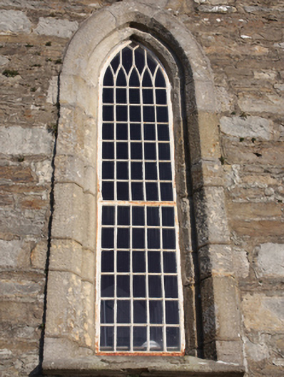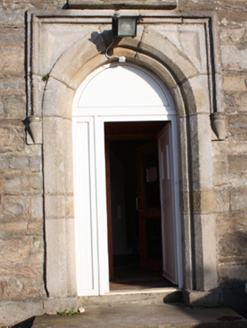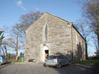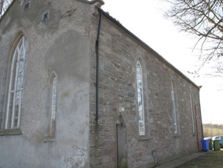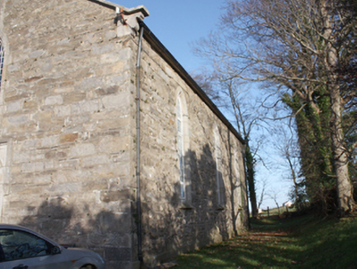 Freestanding gable-fronted single-cell former Church of Ireland church, built c. 1840, comprising three-bay hall. Now in use as offices. Pitched artificial slate roof with projecting cut stone eaves course, raised ashlar granite coping to gables having carved kneeler stones to eaves, and with tripartite carved sandstone chimneystack to the gable apex to the rear (north-east). Coursed and squared rubble stone walls over ashlar granite plinth to front (south-east), rubble stone walls to side elevation (north-west and south-east), and smooth and roughcast rendered wall to rear (north-east). Pointed-arched window opening to the front elevation (south-west) having splayed\chamfered ashlar granite surround, and with cast-iron multi-paned windows. Pointed-arched window opening to the rear elevation (north-east) having splayed\chamfered ashlar granite surround, timber Y-tracery and with cast-iron multi-paned windows; main window flanked by narrow pointed-arched windows having splayed\chamfered ashlar granite surround, and with cast-iron multi-paned windows. Pointed-arched window opening to the side elevations (north-west and south-east) having splayed\chamfered ashlar granite surround, and replacement windows. Round-headed door opening to centre of main façade (south-west) with cut granite staged surround, granite plinth blocks, granite hoodmoulding over, and with replacement door. Pointed-arched door opening to west of north elevation with replacement timber battened door. Set back from road in elevated site in the rural countryside to the south-west of Letterkenny.