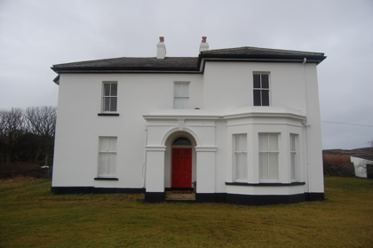 Detached three-bay two-storey L-plan hotel, built c.1890, having open porch to front re-entrant corner, canted-bay window to front, and two-storey canted bay to southwest gable. Now in use as private dwelling. Possibly incorporating fabric from earlier building, and having single-storey and two-storey additions to rear. Hipped slate roof with overhanging lined eaves, replacement rainwater goods and paired smooth-rendered chimneystacks with cornices and clay pots. Hipped slate roof to canted bay. Flat rendered ovoid roof to porch and bay window with continuous projecting moulded cornice on eaves course. Smooth-rendered walls on plinth course with sill course to canted bay, having moulded string course to first floor, sill course to bay window and moulded course to springing level of arched openings to porch. Square-headed openings with painted stone sills and two-over-two pane timber sliding sash windows; internal timber panelled shutters remain. Round arch opening to porch with moulded and chamfered surround with vermiculated keystone; round-headed doorway to interior with double-leaf timber panelled door with moulded transom, and fanlight, approached by stone step. Set in exposed location, with surrounding garden, single-storey outbuilding to north, rubble stone boundary wall, and road entrance with squared-plan rendered piers with plinths, stepped cornices and oversize pyramidal copings and cast-iron double-leaf gate.