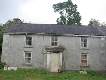 Detached three-bay two-storey house, built c. 1830, having central projecting canted windbreak porch to the front elevation (south-east), and with attached to two-storey two-bay outbuilding to the north-west gable end having external flight of stone steps giving access to doorway at first floor level. Now out of use. Pitched natural slate roof (small Scottish? slate) having rendered chimneystacks to gable ends (north-east and south-west), and with remains of cast-iron rainwater goods. Roughcast rendered walls over smooth rendered plinth course, and with smooth rendered block-and-start quoins to the corners. Square-headed window opening with two-over-two pane timber sliding sash windows. Square-headed door opening to front face of porch having battened timber door, and with stone plinth blocks. Two-bay two-storey outbuilding attached to the north-east gable end having pitched natural slate roof with projecting stone eaves course, limewashed rubble stone walls, and square-headed doorways with remains of battened timber doors. Set back from road in own grounds to the west of Ballybofey, and to the south of Altnapaste. Yard to front of house (south\south-east). Detached three-bay single-storey outbuilding to the south-west\south of site having corrugated-metal roof, limewashed rubble stone walls, and square-headed doorways with remains of timber fittings; single-storey mono-pitched projection annexes to either gable end. Gateway to the north-east comprising a pair of rubble stone gate piers (on square-plan) and with a pair of wrought-iron gates.