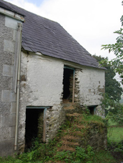 This modest but well-proportioned house\farmhouse, of probable mid-nineteenth-century dates, retains its early form and character despite being no longer occupied. Its visual expression and integrity is enhanced by the retention of much of its original fabric including timber sliding sash windows, while the natural slate roof with small slates (Scottish?) gives this building quite a picturesque appearance. The plain front elevation is enhanced by the simple smooth rendered quoins and plinth course. The canted windbreak porch is an interesting feature that is found on a number of vernacular houses (generally single-storey structures) in the area. The form of this building with chimneystacks to the gable ends suggests that this building may be of the ‘direct-entry’ type that is characteristic of the vernacular tradition in the north-west of Ireland, and hints that this building may have been originally single-storey with the first floor added later. The attached outbuilding to the north-east also survives in good condition and is an interesting example of its type and date. This outbuilding has an external staircase giving access to a doorway at first floor level, which is a feature of many outbuildings in County Donegal. The detached outbuilding to site and the simple gateway to the north-east complete the setting and add to the context of this composition, which is an element of the built heritage of the local area.