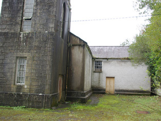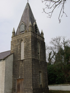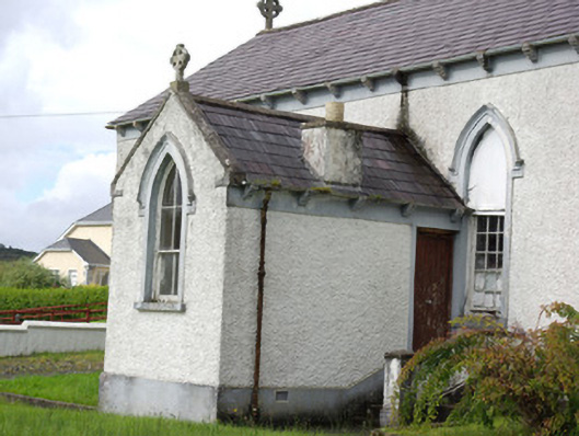 Despite being no longer in use, this interesting and well-detailed mid nineteenth-century Catholic church retains much of its early character and form. The pointed-arched window openings lend it the bare minimum of a Gothic Revival architectural style that is typical of many small Catholic churches of its type and date built throughout the Irish countryside. The survival of early timber sliding sash windows with intersecting glazing bars to the heads adds to the integrity and visual expression of this building. This church is notable for the rather squat but well-detailed ashlar belltower to the east, which has an unusual slated spire with lucarnes and cut stone pinnacles to the corners that are clearly the work of skilled masons. This feature was added to the plainer original or earlier building c. 1890, and illustrates the increasing wealth and architectural ambition of the Catholic Church in Ireland as the nineteenth century progressed. This church was apparently originally built or rebuilt in 1858. However, there is a small T-plan chapel on a similar footprint indicated here on the Ordnance Survey first edition six-inch map of 1837 so it is possible that this building contains fabric from this earlier building. The interior (not viewed) is notable for having three galleries and originally had the altar located at the centre of the long axis of the south side of the nave. This church went out of use c. 1984 following the construction of a new church (not in survey) a short distance to the south. This earlier church building at Haugh/Gortlosky occupies a prominent location adjacent to a road junction, and is a landmark feature in the rural landscape to the north of Donegal Town. This building is an integral element of the built heritage of the local area, and is an important element of the social history of Killymard as a focal point of community and worship since the mid-nineteenth century. The graveyard, boundary wall and the pedestrian gateway add to the setting and complete this composition.