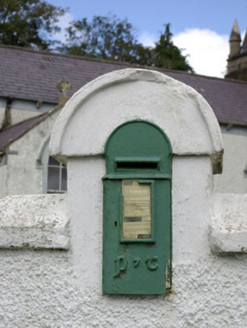 An attractive item of street furniture that represents an early surviving artefact of mass-produced cast-iron ware. Its survival is testament to the quality of its original design and of the materials used in its manufacturing. The modest design of the box is enhanced by the raised P & T motif (Department of Posts and Telegraphs) in Celtic Revival-style script, which enlivens the appearance of this otherwise functional object. The use of Old Irish lettering represents tangible, if subtle evidence of the promotion of an indigenous national identity by the newly independent state. This post box is of the ‘lamp box’ type and was probably formerly/originally attached to a post or pole in this vicinity before being moved to its present location. This post box is located adjacent to a rural crossroad junction, a common site for post boxes for obvious reasons. This simple piece of street furniture makes a positive contribution to the rural landscape to the north of Donegal Town at Gortlosky, and is an addition to the built heritage of the local area.