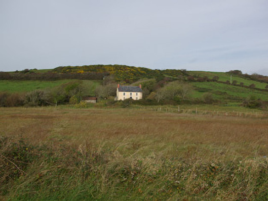 Detached three-bay two-storey house, built c. 1820, with lean-to extension to the west elevation. Pitched natural slate roof with terracotta ridge tiles, smooth rendered chimneystacks to gable ends (east and west), and with cast-iron rainwater goods. Smooth rendered ruled-and-lined walls. Square-headed window openings with plain raised rendered surrounds, stone sills, and with six-over-six pane timber sliding sash windows. Central square-headed door opening with plain raised rendered surrounds, replacement timber battened door and with plain overlight. Set well-back of road in own grounds on the south slope of Durnesh Hill. Long approach avenue across marshy ground from the south. Gateway at start of laneway comprising a pair of squared rubble stone gate piers (on square-plan) having pyramidal capstones and a pair of wrought-iron flat-bar gates. Located to the south-west of Ballintra, and close to the shores of Donegal Bay. Detached single-storey outbuilding to the south-west.