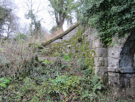 Single-arch limestone bridge, built c.1855, carrying disused Portadown to Cavan railway line over road. Depressed arch with rock-faced voussoirs and red brick soffit, curving sloping limestone wing walls to eastern end of south elevation and western end of north elevation and sloping buttresses to abutments on both north and south elevations. Roughly hewn limestone blocks built to courses. Chamfered cut-stone imposts, chamfered cut-stone string course above arch and to parapet, and cut-stone copings to wing walls.
