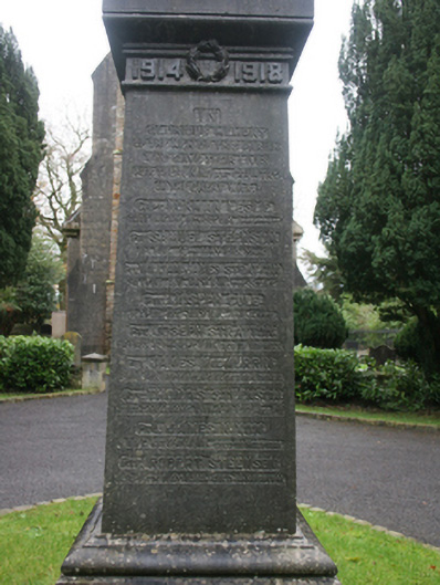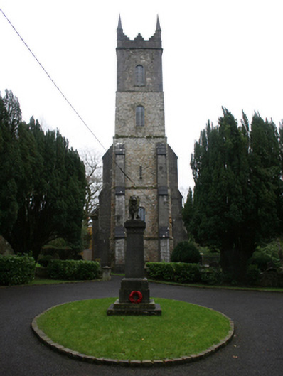 This memorial is a poignant reminder of the sacrifice of combatants in the First and Second World Wars. It is a well crafted and solemn composition, the lion at the top recalling the courage of those commemorated. Its setting is attractive, at the entrance to the Church of Ireland church in the grounds of Castle Leslie.