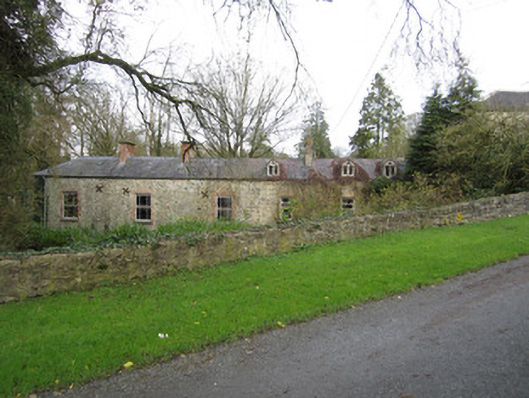 End of row three-bay single-storey former laundry, built c.1820, with gabled porch to front elevation. Hipped slate roof with stone eaves course and red brick chimneystacks topped with moulded copings, and having corrugated-metal roof to porch. Random rubble limestone walls with cut-stone quoins, and having metal tie-plates to front elevation. Square-headed window openings with two-over-two and three-over-three pane sliding timber sash windows with red brick surrounds and stone sills. Square-headed door opening with cut-stone surrounds to porch.